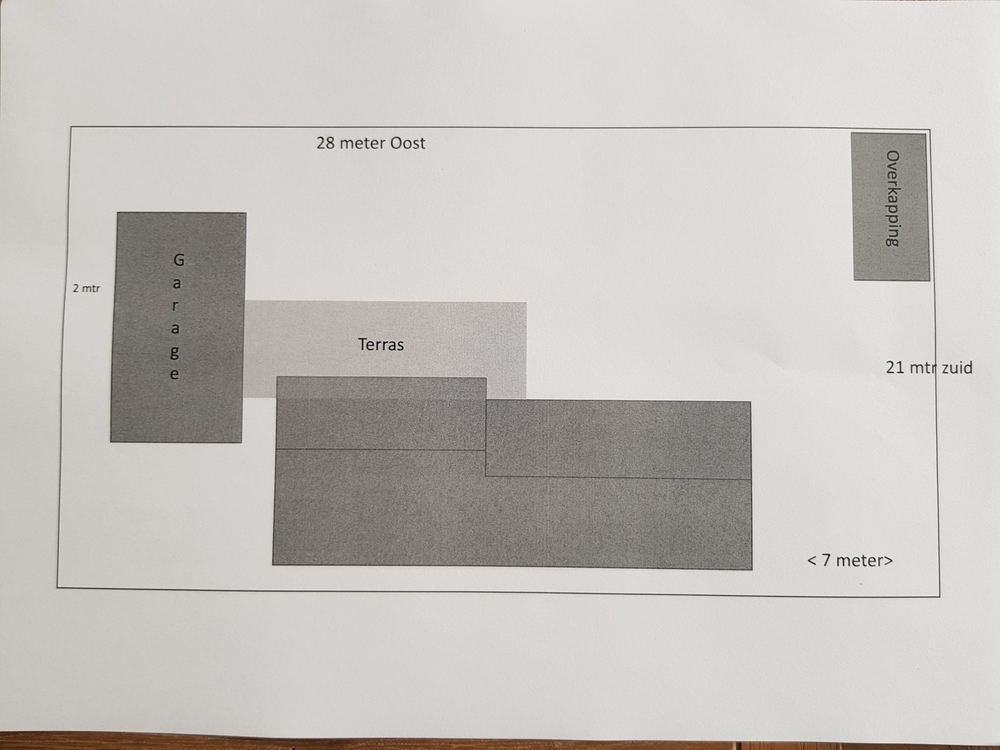 De tuin is helemaal leeg, wij vinden het lastig om vanuit niets te beginnen. Het enige dat we zeker weten, is dat er langs de zuidkant een beekloop komt. Hier staan bij de buren coniferen van 3 meter hoog.