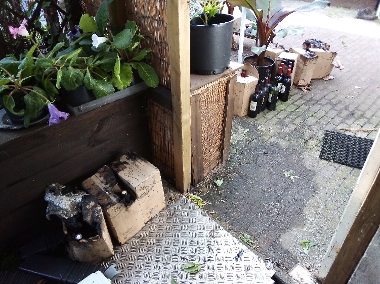 Mijn heel terras afgebrand, en garage zware schade. Deel van mijn tropische planten ook weg is een zeer slechte dag voor mij