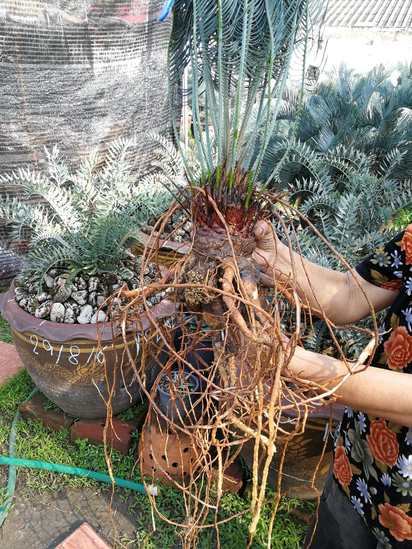 Op kleine 10 dagen was de plant geleverd waarvan 3 dagen bij douane..mits de nodige papieren moesten ze perse de cycas uitpakken en losrukken uit de doos..met enkele wortels gekrakt als gevolg..