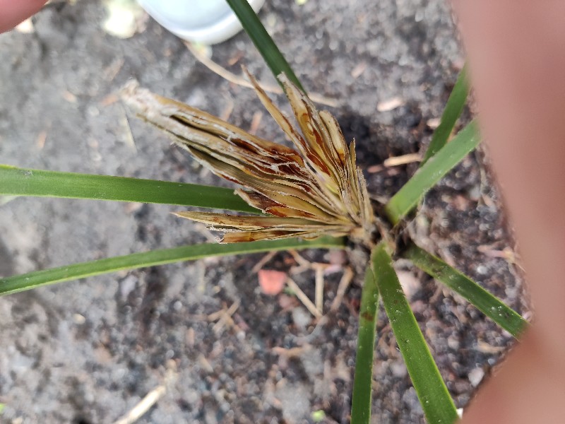 Helaas lijkt er wat aan de hand de Wagner Palm. Heel klein gekocht en opgekweekt en dan nu dit...Dat doet wel een beetje pijn
