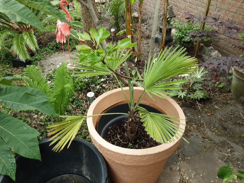 Update tuin mei 2020, met op verzoek van Matko ook de bv recent aangeplante kleine Phoenix Canariensis.