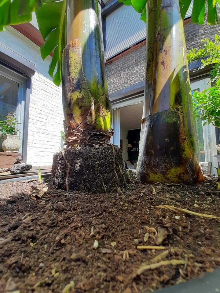Klopt , die gedachte heb ik ook gehad dat het eventueel zwakker kon zijn. De wortels die nu bloot liggen krijgen een coting and blijven functioneren. Dit zal wel iets helpen, aangezien de dichtheid. Lijkt erop dat de banaan zelf een oplossing heeft voor zon en openlucht. :thumb_up: