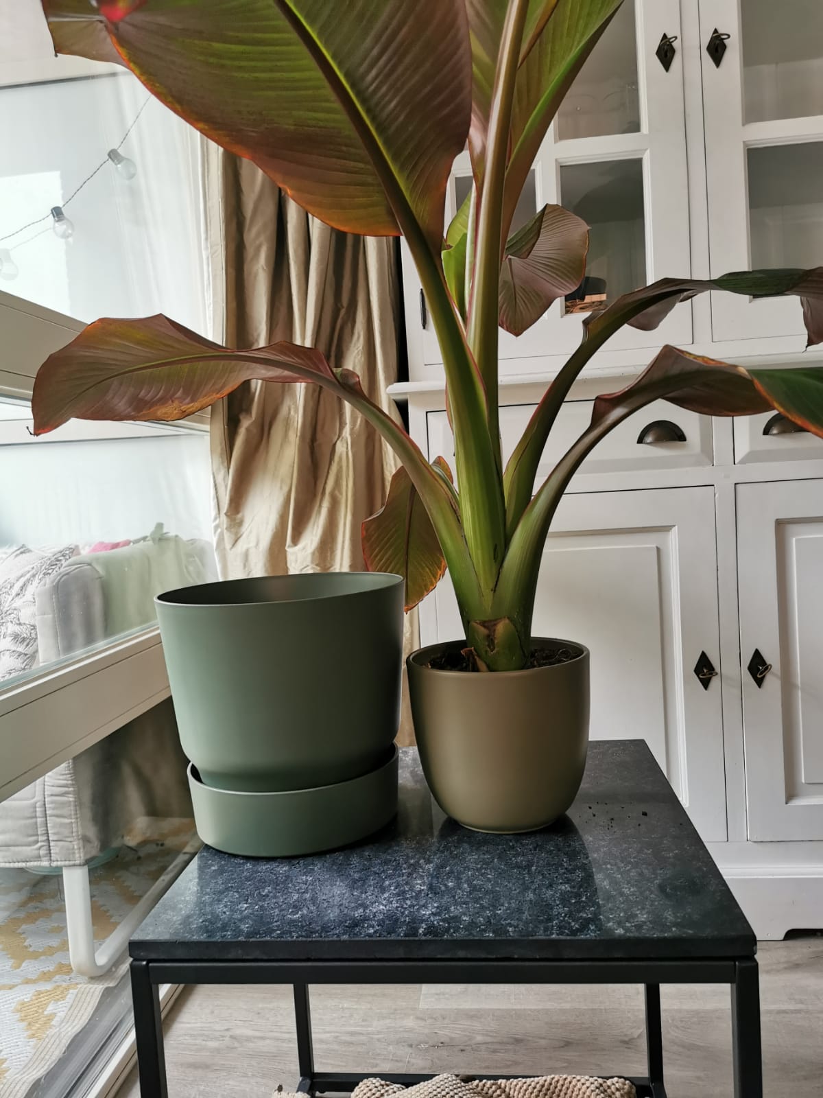 Sinds ik één week op vakantie ben geweest groeit mijn Ensete Ventricosum behoorlijk scheef. De grond was erg uitgedroogd in een week tijd, ondanks de ruime hoeveelheid water vooraf. Nu zijn we anderhalve week verder en staat hij nog scheef. Ik heb al geprobeerd met touwtjes de plant weer recht te trekken, maar dat leek slechts tijdelijk te werken (of moet ik dit constant doen nu?)