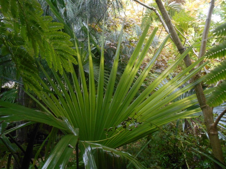 Nog even over de ukhrulensis, die begint met het ontvouwen van zijn vijfde blad en is daarmee de periode van aanslaan voorbij. De groei komt nu echt los en om eerlijk te zijn is dit ook wel echt een mooie palm. Nog meer tomentum dan bij de echte princeps, ook op de bladeren, een een fraaie meer blauwwitte gloed over de onderkant van de bladeren. De stamdiameter is echter nog dunner: ik schat een cm of 15 maximaal.