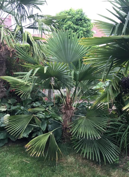 Vandaag nog weer even een vergelijking gedaan tussen de echte princeps (midden) de New Form (links) en de ukhrulensis (Manipur) op rechts. Op dit moment hebben de eerste twee exact vijf bladeren gemaakt dit jaar en staat de zesde op het punt te ontvouwen. Het is bizar om te zien hoe de groeisnelheid van beide planten nu de afgelopen vier jaar exact even snel is. Wat aantallen bladeren betreft en het moment van uitvouwen hiervan verschillen ze echt niets. Opvallend verschil is wel de ontwikkeling van de stam. Van de New Form is deze nu 110 cm lang en van de princeps is dit nu 90 cm. Daarmee heeft de New Form de echte ruimschoots ingehaald. De New Form staat sinds april 2016 in de volle grond, de princeps sinds 2009. Ook is de stamdiameter van de princeps groter, gemiddeld een dikke 20 cm. Van de New Form is dit iets minder dan 20 cm. Als laatste zag ik ook dat de bladslippen van de New Form nu bijna 90 cm lang zijn tegen een kleine 85 cm van de echte princeps.