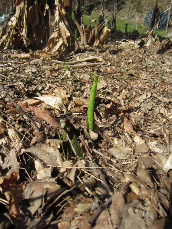 ..en er zijn ook al wat exoten wakker aan het worden. Gelukkig maar, want eind december hadden we een periode van ruim 2 weken die zeer koud was, met elke nacht vorst en ook overdag maar net boven het vriespunt. Heel veel citroenbomen in de omgeving zijn doodgevroren. Op eigen terrein is de 4m hoge Jacaranda teruggevroren. De tropische Albizzia lophantha die hier al 7 jaar staan zijn dood.