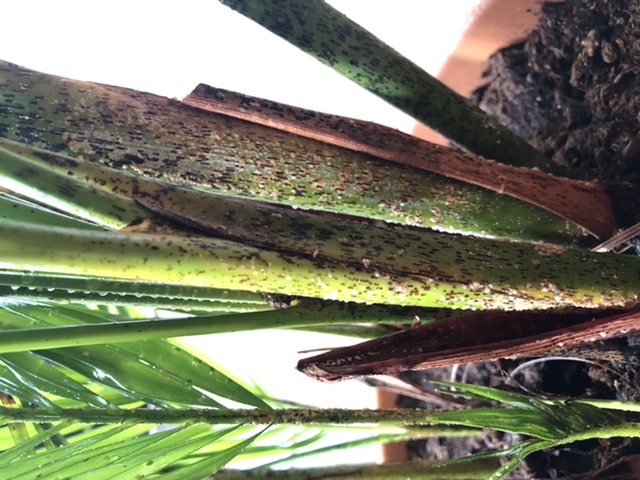 Check die andere twee palmen in ieder geval nauwgezet. Elk puntje/schildje is het begin van nog zon drama!