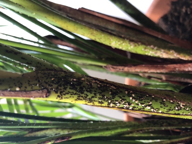 Check die andere twee palmen in ieder geval nauwgezet. Elk puntje/schildje is het begin van nog zon drama!