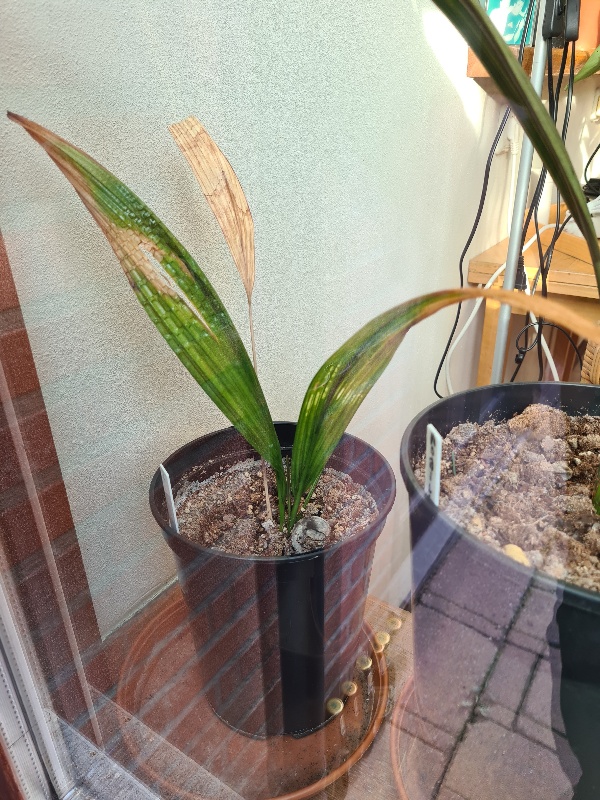 Ik heb 5 Bismarckia die opkomen en ze gaan eerst diep in de grond waardoor het lang lijkt of ze afgestorven zijn, maar na enige tijd wortelen zonder daglicht breekt de wortel open en komt er een eerste speer uit.