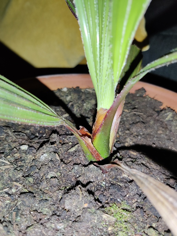 Dank voor de leuke reacties. En die rode gloed blijft als hij groter wordt. Of is dit verschijnsel wel vaker als de palmen nog kleiner zijn?