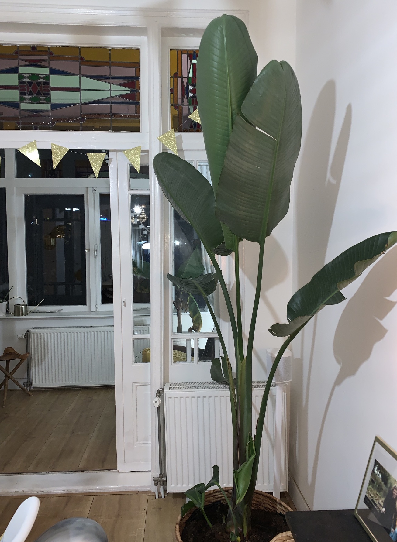 De trots van ons huis, een 2 meter hoge Strelitzia, begint sinds deze week flink te krullen.