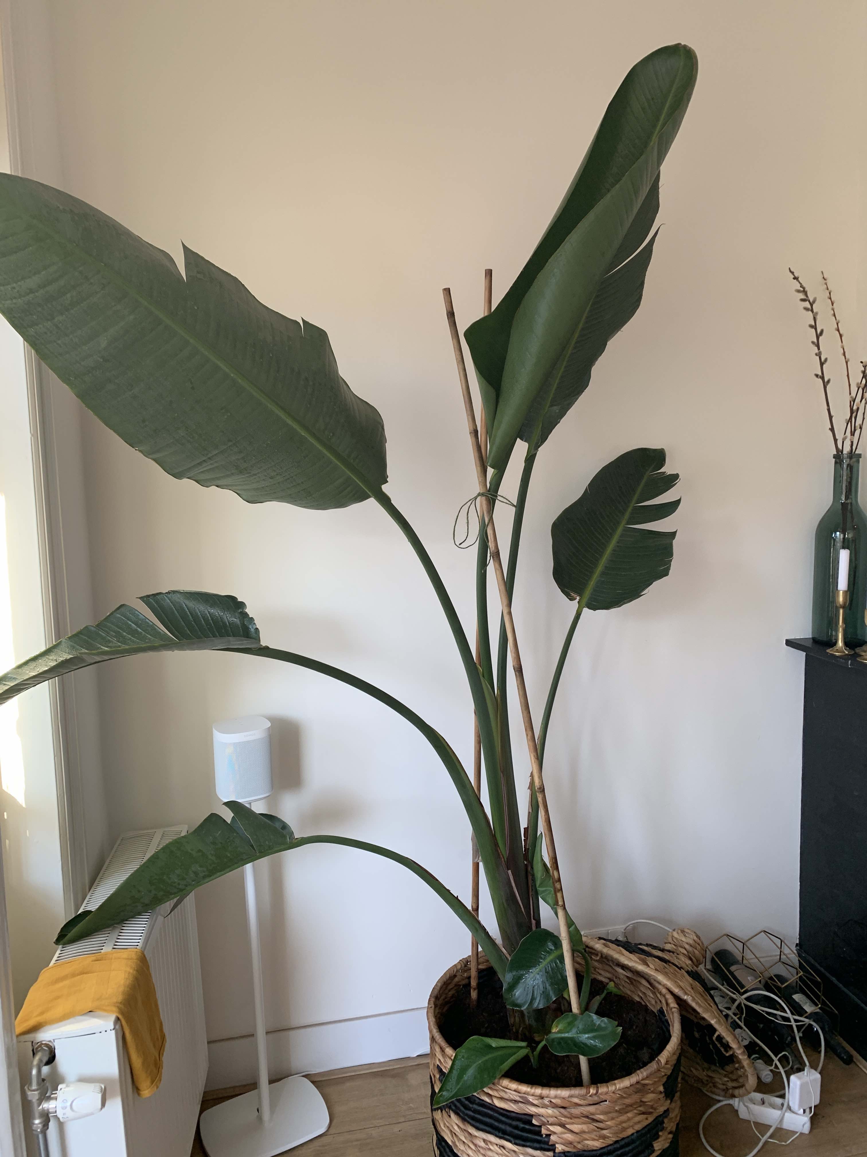 De trots van ons huis, een 2 meter hoge Strelitzia, begint sinds deze week flink te krullen.
