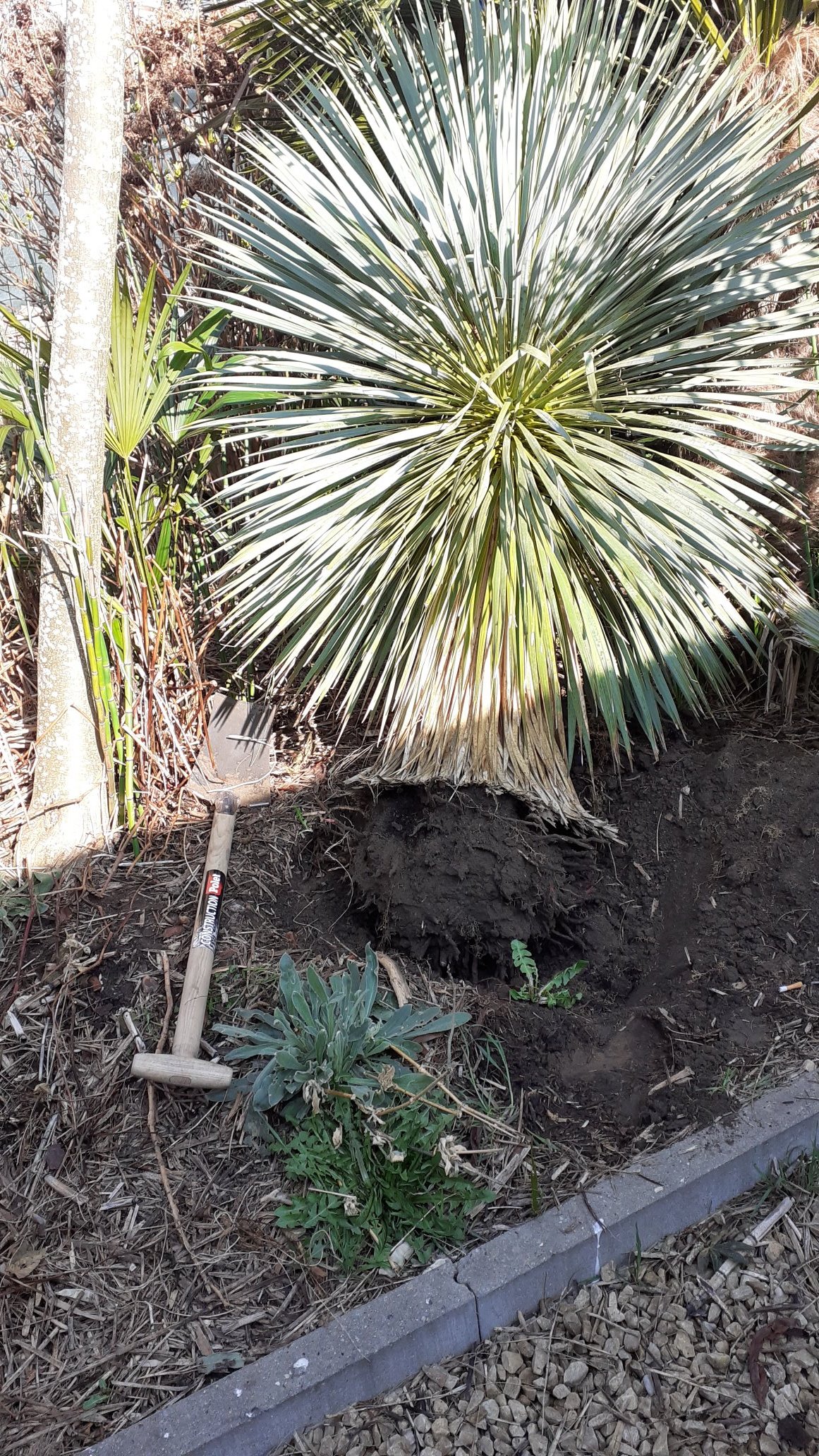 Vandaag op enkele uurtjes een lange border aangelegd met o.a. Trachycarpus princeps, Chamaerops vulcano, Yucca rostrata, fatsia Japonica enz...
