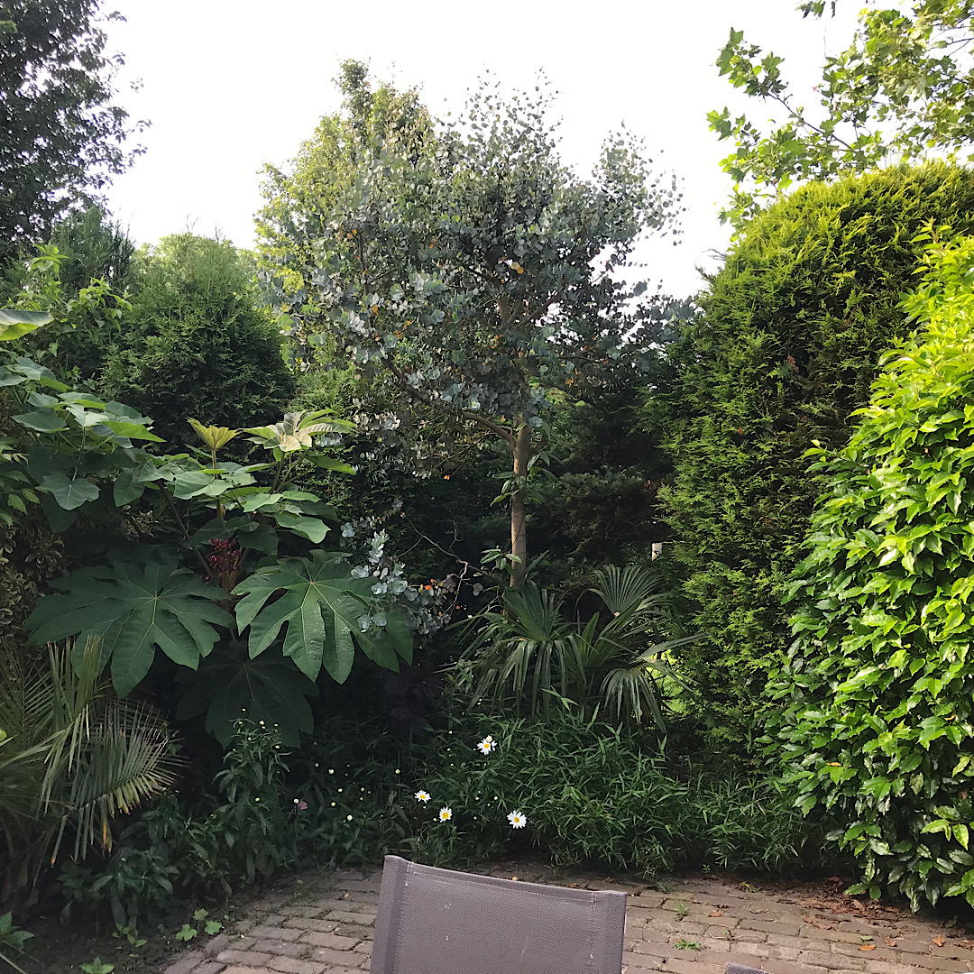 Ook belangrijk, ik ben een beetje lui. Ik pak in zodat ik er niet heel veel werk aan heb. Bescherming tot -6, -8 zeg maar. Maar ik heb wel van alles klaar liggen om in te grijpen als dat nodig is, dus als het kouder wordt. Extra zeilen die je makkelijk even ergens extra overheen kunt gooien of extra noppenfolie wat je ergens omheen kunt wikkelen. maar de basis is altijd klaar medio december.