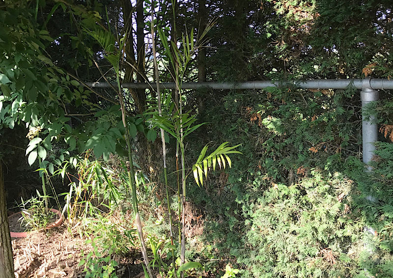 De voortuin met 15 meter tempelbamboe en 40 meter jonge fargesia campbell en rufa. Ook een lavendelhaag langs de oprit.