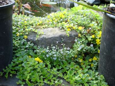 rand beplanting van de vijver,de gele bloemen waar ik de naam even van kwijt ben geuren heerlijk zoet