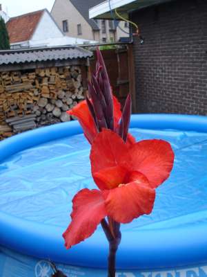 nog een paar tuin foto's,de canna indica in bloei