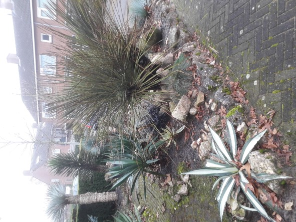 AL ONDERSTAANDE FOTO'S ZONDER WINTERBESCHERMING, ALLEEN BIJ ZEER STRENGE VORST DE DASYLIRION MET 3 KOPPEN WORDT BESCHERMD.