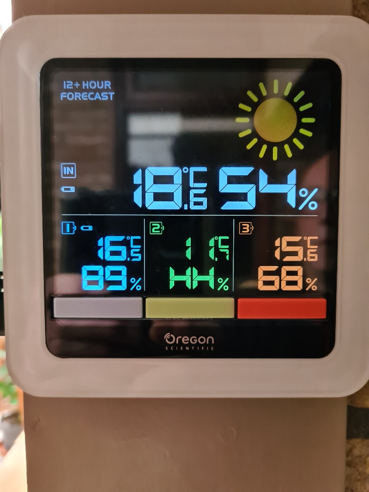 Buiten temp 16,5C , schuur op noord 11C, zolder 15C