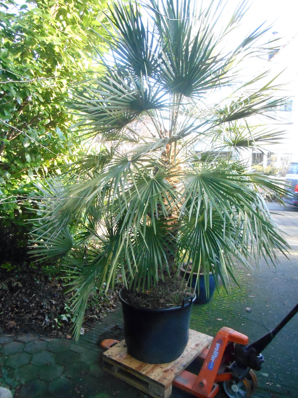 Volle grond was voor mij geen keuze, Tim. Chamaerops moet beschermd worden met de optie voor verwarmen. Met ruim 2 meter hoogte is dat nu nog wel te doen maar over een aantal jaren lukt dat niet meer. De nieuwe eigenaar wil 'm wel in de tuin planten.