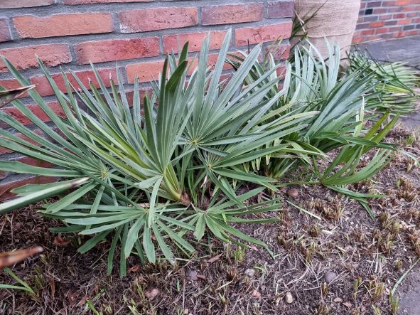 De voorwaarden ontbreken hiervoor Dennis, een warme plek in de zon. Op het terras is de situatie beter. In de tuin heeft Trachycarpus sinds 2020 gezelschap van Rhapidophyllum hystrix. Die palm houdt ook van warmte maar hoeft niet per se in de volle zon en verdraagt beter de nattigheid.