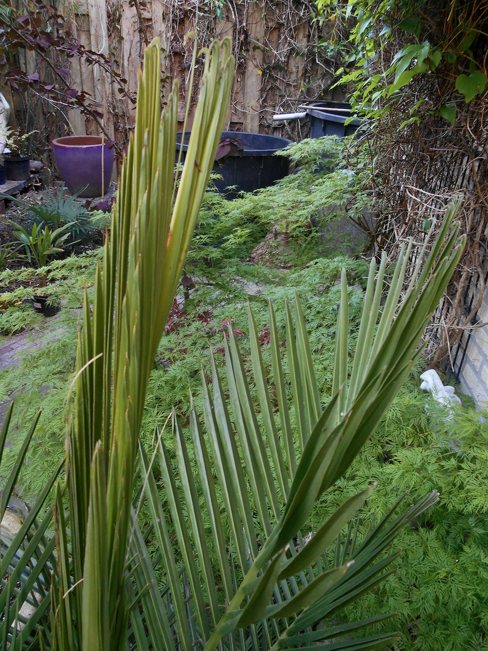 Foto geeft mijn 2 Sabals minor. De kleinere is al van 2010 of zo en heeft al eens gebloeid.