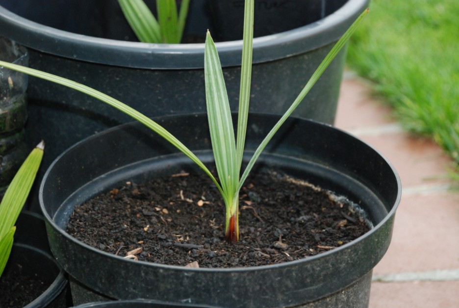 Trachycarpus Fortunei,staat nu een 2 tal maand in volle grond,bezig aan 3 de blad te ontvouwen