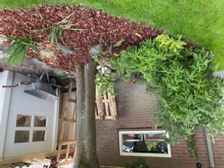 Wij hebben dit inmiddels proberen om te toveren tot een meer mediterrane/tropische tuin.