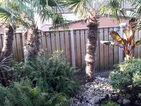 De licuala dit buiten op de molen steen ookl pal op het zuiden van's morgens vroeg tot's avonds laat zon krijgt. Zulk slecht weer was het niet afgelopen ,maand.