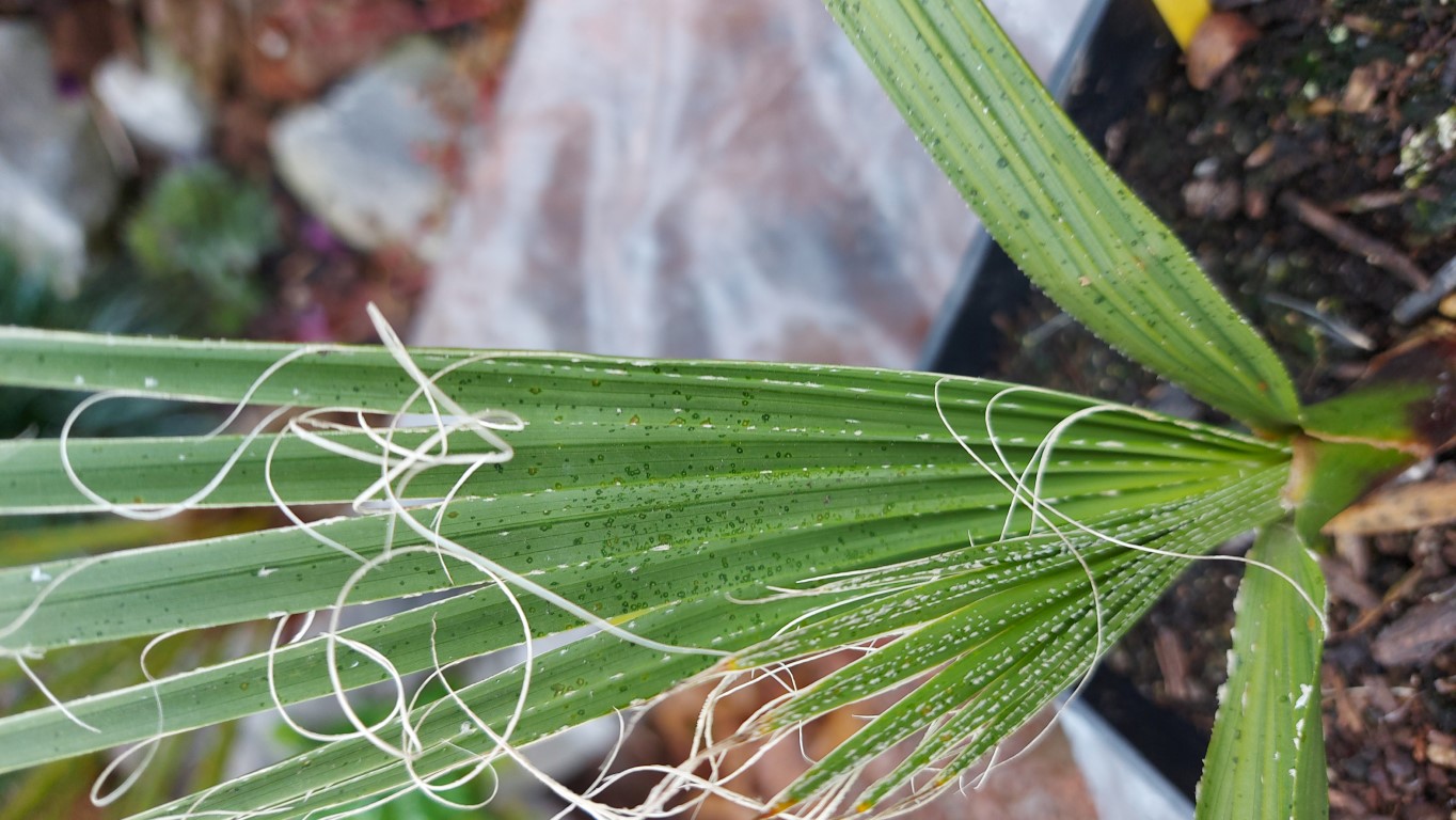 @ lapalmeraie nog eens jouw palm nader bekeken en deze bezit tomentum op de bladeren niet zo uitgesproken als vorig foto wat zou beduiden dat deze een filibusta is (of eigenschap bezit) heb dit nog nergens anders kunnen vast stellen