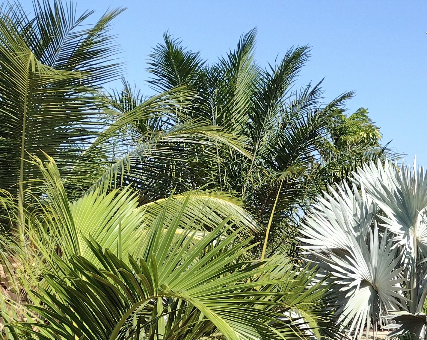 Onze tuin grenst hier direct aan een groot duingebied, dus het is ook nog is van dat stuifzand. Meestal strooi ik 1 tot 2 keer per jaar slow release NPK 10-10-10. Ondanks mijn zuinige bemesting doen de meeste palmen het er prima op. Het grote voordeel is dat je je planten niet kan verzuipen :lol: Zelfs als ik de tuinslang er een paar minuten naast leg ontstaan er nog geen plassen. Het draineert instantaan. Het nadeel is uiteraard wel dat je niet zomaar een paar dagen kan overslaan. Enkele dagen is nog niet direct een probleem, langer wordt wel direct zichtbaar. Met als resultaat verdroging, dor blad en stil vallende groei. Gemiddeld zijn we zo'n 2 tot 3 weken per maand hier, de rest van de tijd zitten we in ons huis in de stad en wordt de tuin bewaterd door onze vrouwelijke tuinman. Helaas is zij minder scheutig met water. Gedurende de periodes dat ik het zelf doe sla ik dus geen dag over. Soms zelfs 2 keer per dag. Zeker nu tijdens de droge periode draai ik er op een dag al gauw een kub of 4 tot 6 doorheen. Water is dus essentieel!! Gelukkig heb ik dat gratis tot mijn beschikking. Omdat we hier ook vlak bij een zoetwater meer wonen met gefilterd water uit het duingebied is mijn put nog nooit droog gevallen.