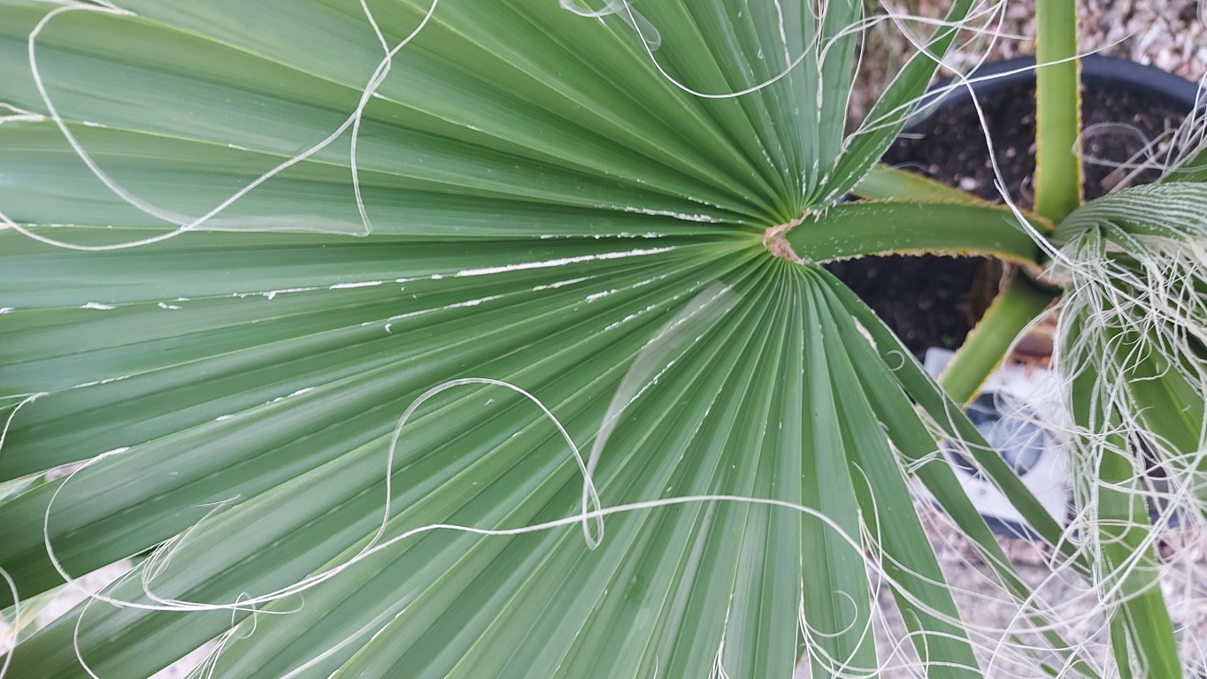 @ lapalmeraie nog eens jouw palm nader bekeken en deze bezit tomentum op de bladeren niet zo uitgesproken als vorig foto wat zou beduiden dat deze een filibusta is (of eigenschap bezit) heb dit nog nergens anders kunnen vast stellen