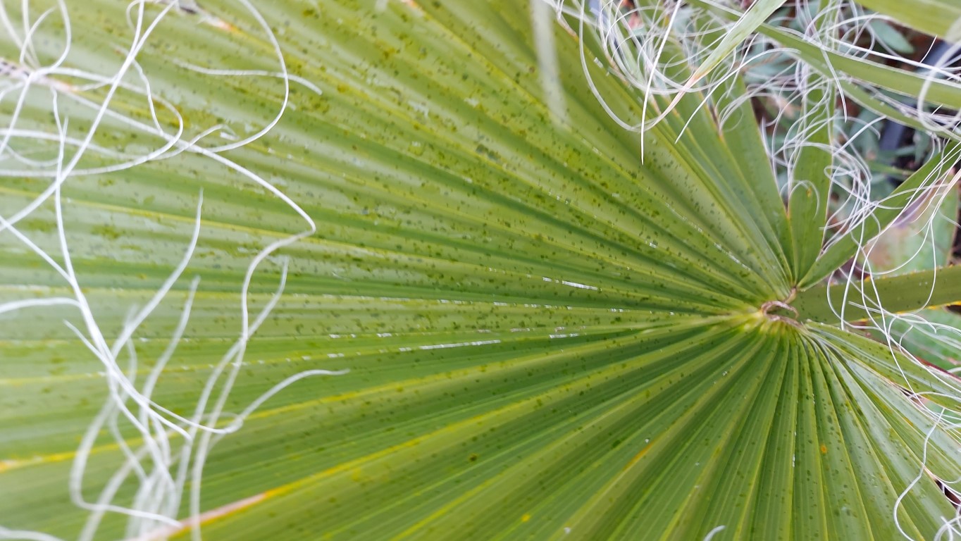 vreemde vaststelling in najaar zwarte puntjes op bladeren W filifera zowel op oudere plant als 1 jaar zaailing.
