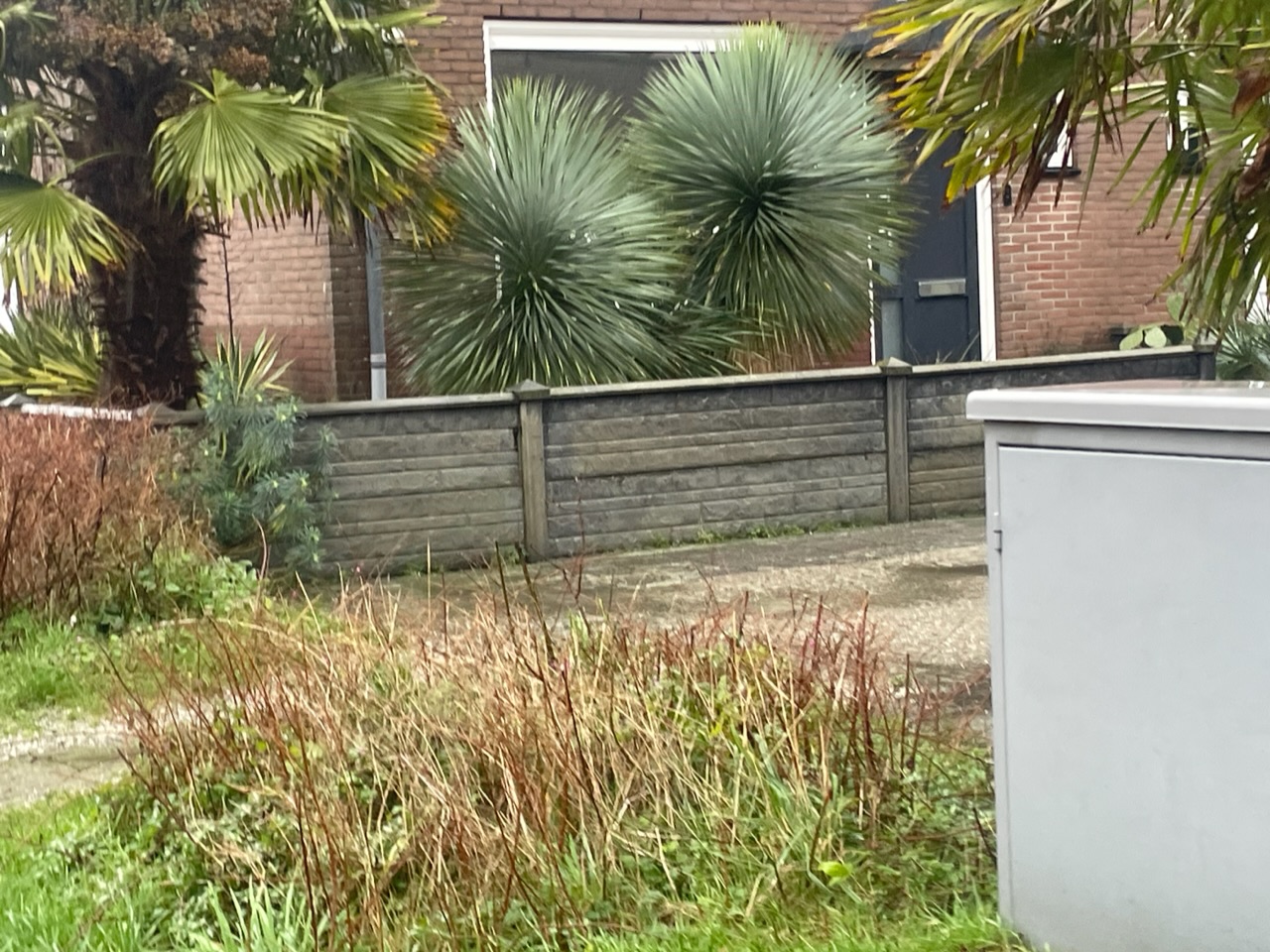 Evengoed is de keuze voor Chamaerops zeker opvallend te noemen zijn op die toch vrij open plek, zeker in dit soort kolossale maatjes!