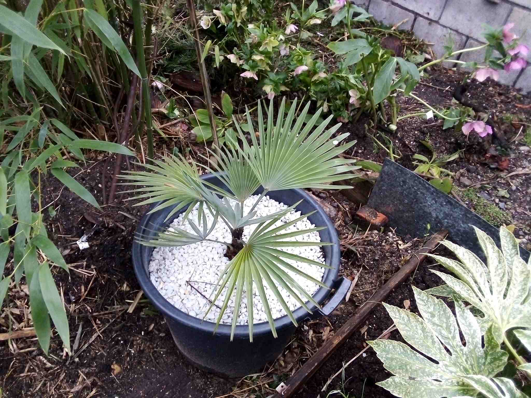 Er is natuurlijk zoiets als alle regels/gewoonte negeren, en ja het is nog vroeg, maar ik ben ook al langzaam aan het uitpakken (vandaag bescherming verwijdert van Butyagrus, Sabal palmetto, kleine Butia capitata en 2 grote Washy). Eerste basjoo ook uitgepakt (geen succes overigens).