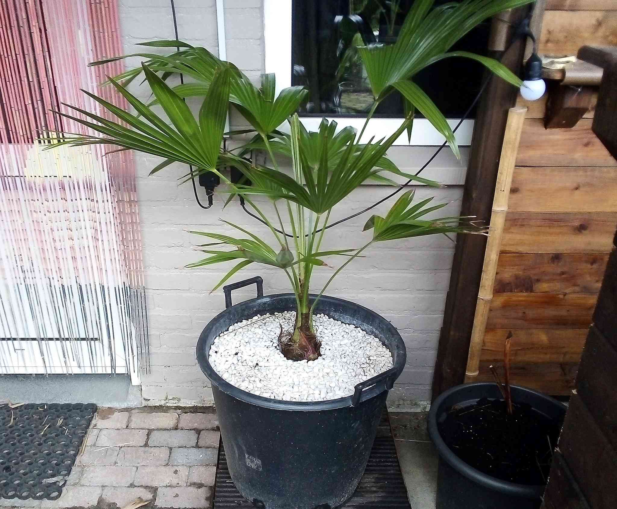 Er is natuurlijk zoiets als alle regels/gewoonte negeren, en ja het is nog vroeg, maar ik ben ook al langzaam aan het uitpakken (vandaag bescherming verwijdert van Butyagrus, Sabal palmetto, kleine Butia capitata en 2 grote Washy). Eerste basjoo ook uitgepakt (geen succes overigens).