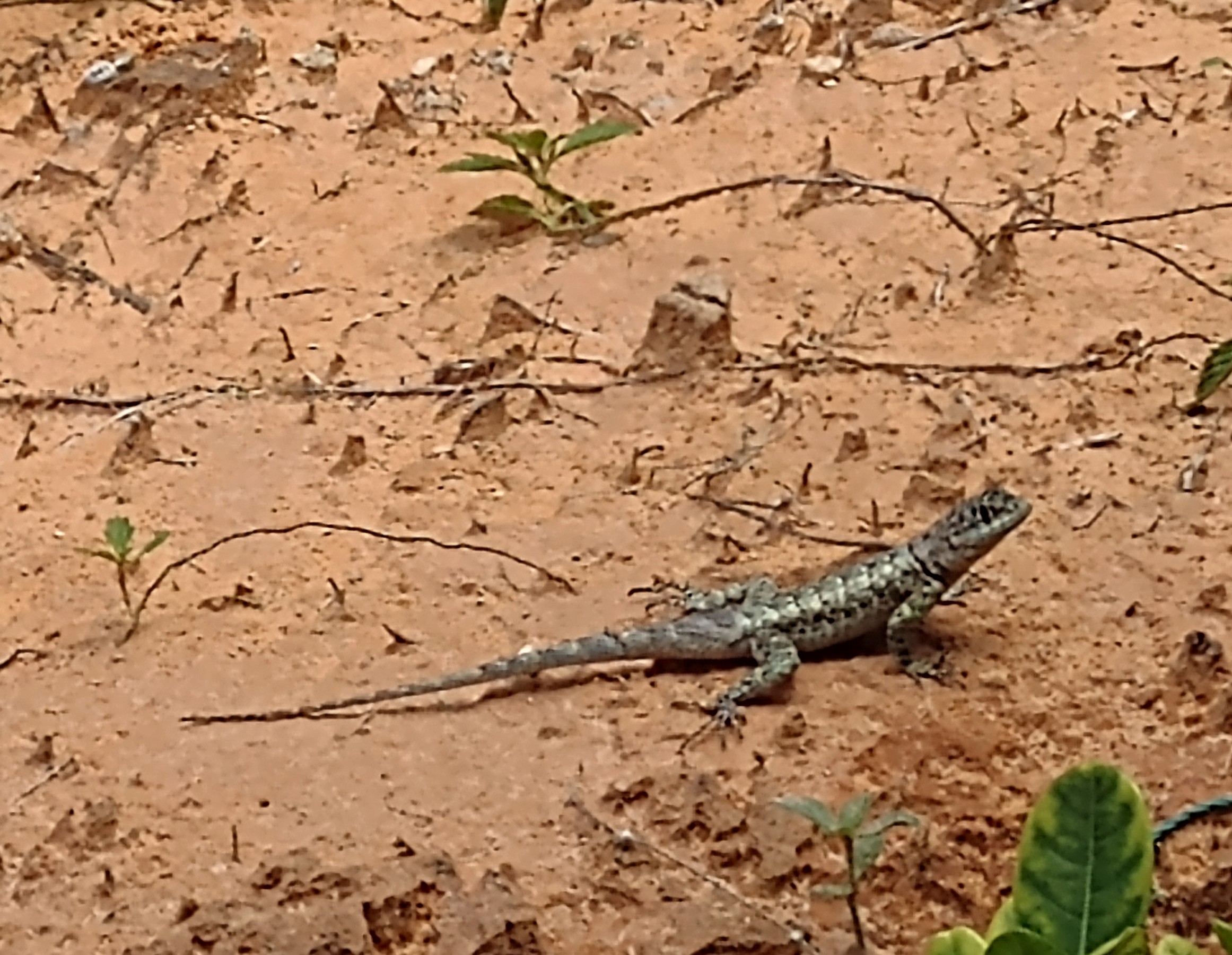 De 1ste van Palmgek, sowieso een soort grondleguaan maar foto is me wat te wazig om uitsluitsel te geven welke soort (zelfs het geslacht durf ik niet zeggen). Zie er wat Tropidurus sp. (kielstaartleguanen) in maar kan nog wel wat anders zijn ook. Is een omnivore soort die zowel insecten, bladgroen als fruit eet, zelfs katteneten als ze het vinden.