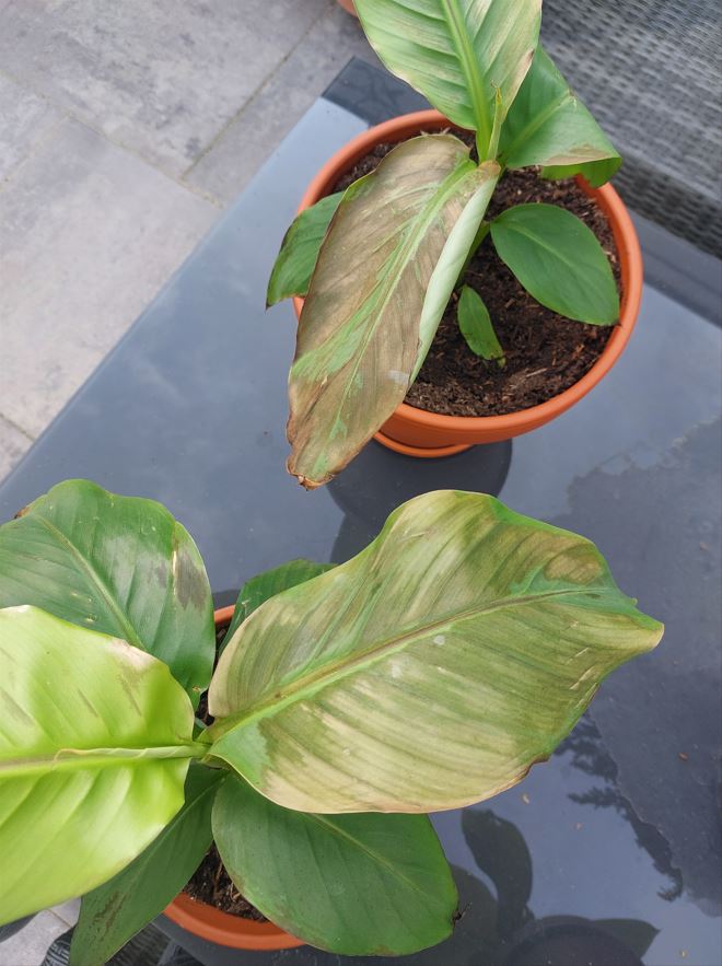 Re: Musa Basjoo blad wordt bruin