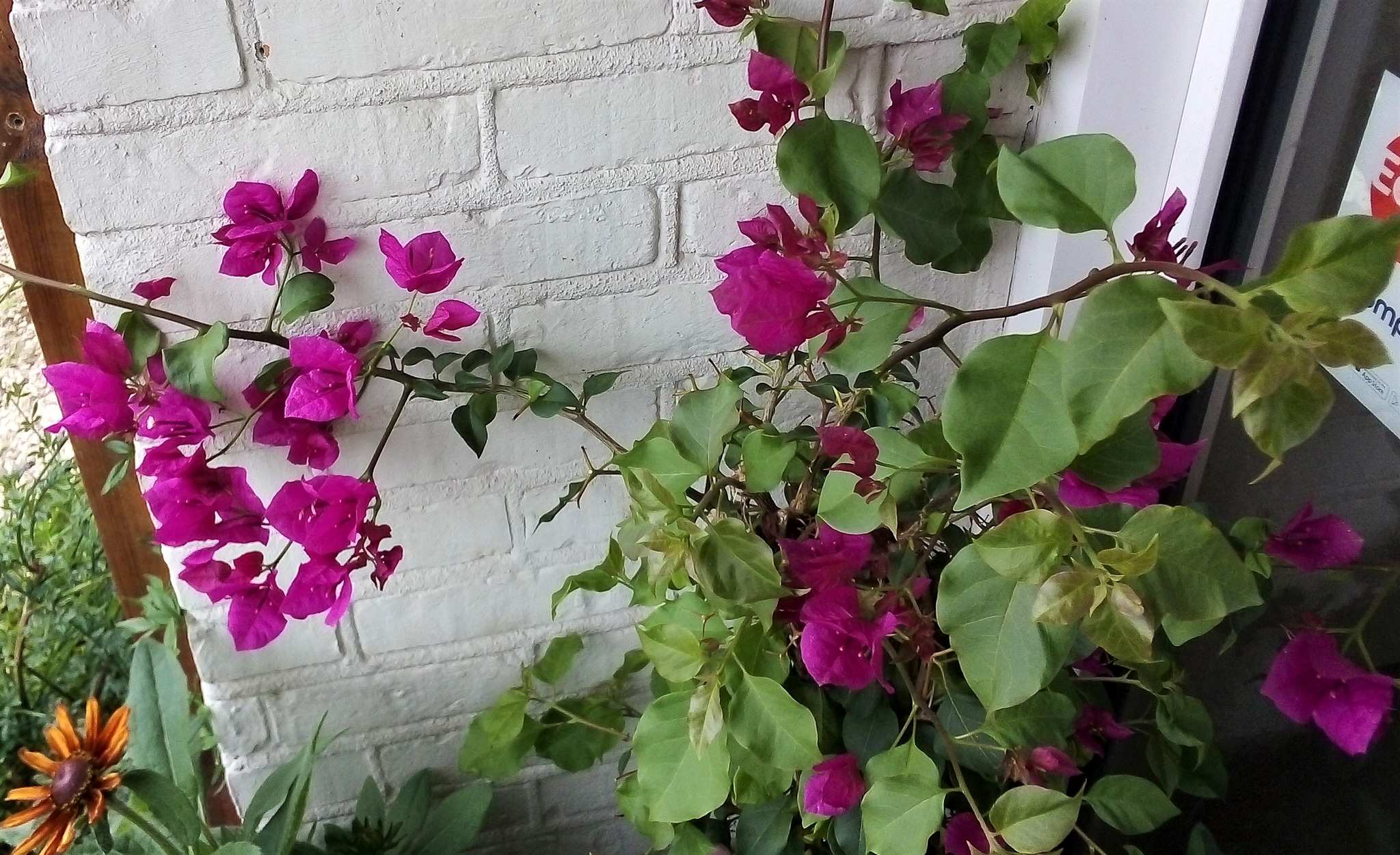 Een bloemrijke presentatie Eddy. Clematis Princes Diana was lang mijn favoriet met een zomerlange bloei. Vorig jaar heb ik de klimmer vervangen door Passieflora coerulea omdat voor het tweede jaar meeldauw de bloei verziekte.