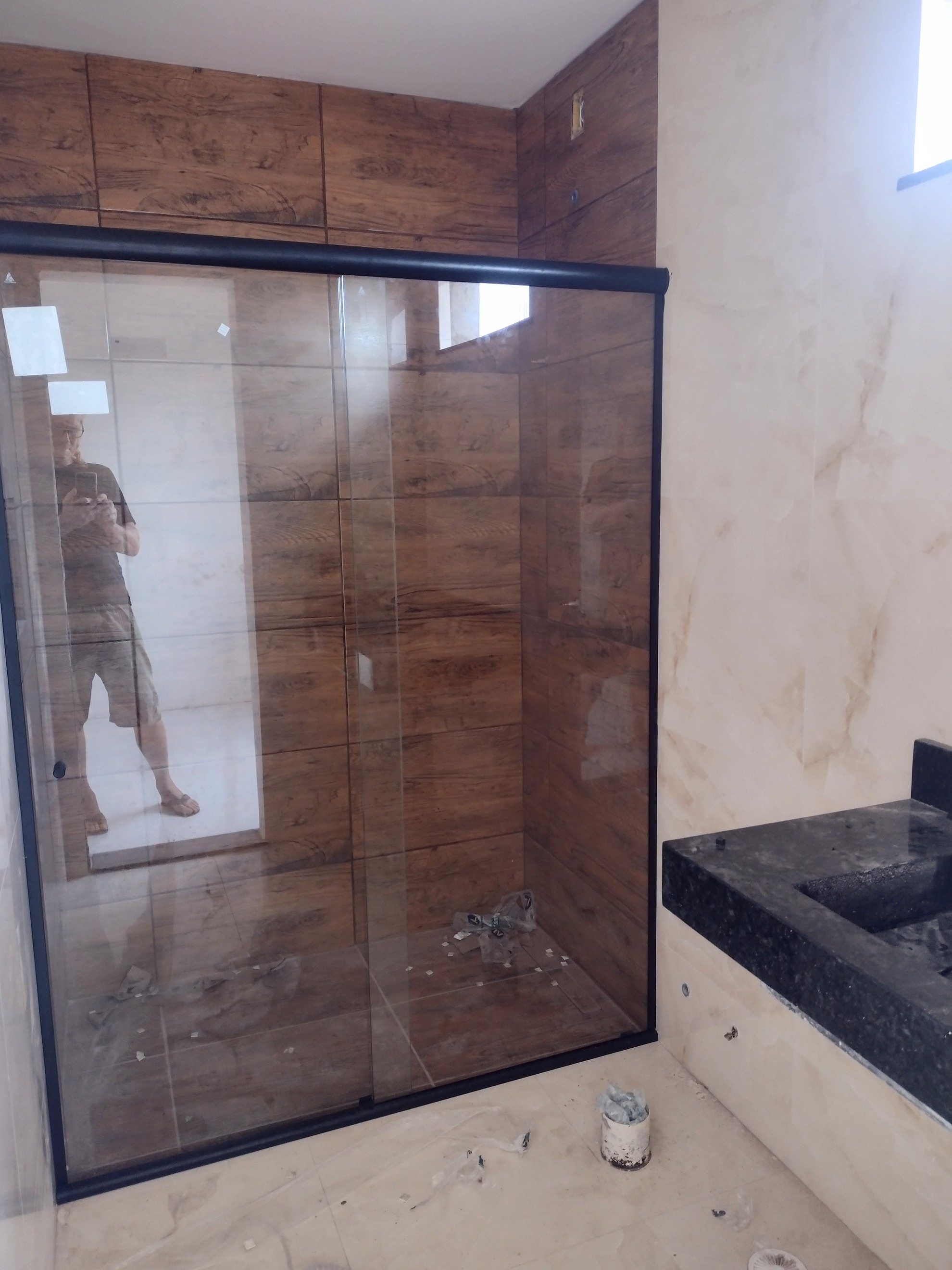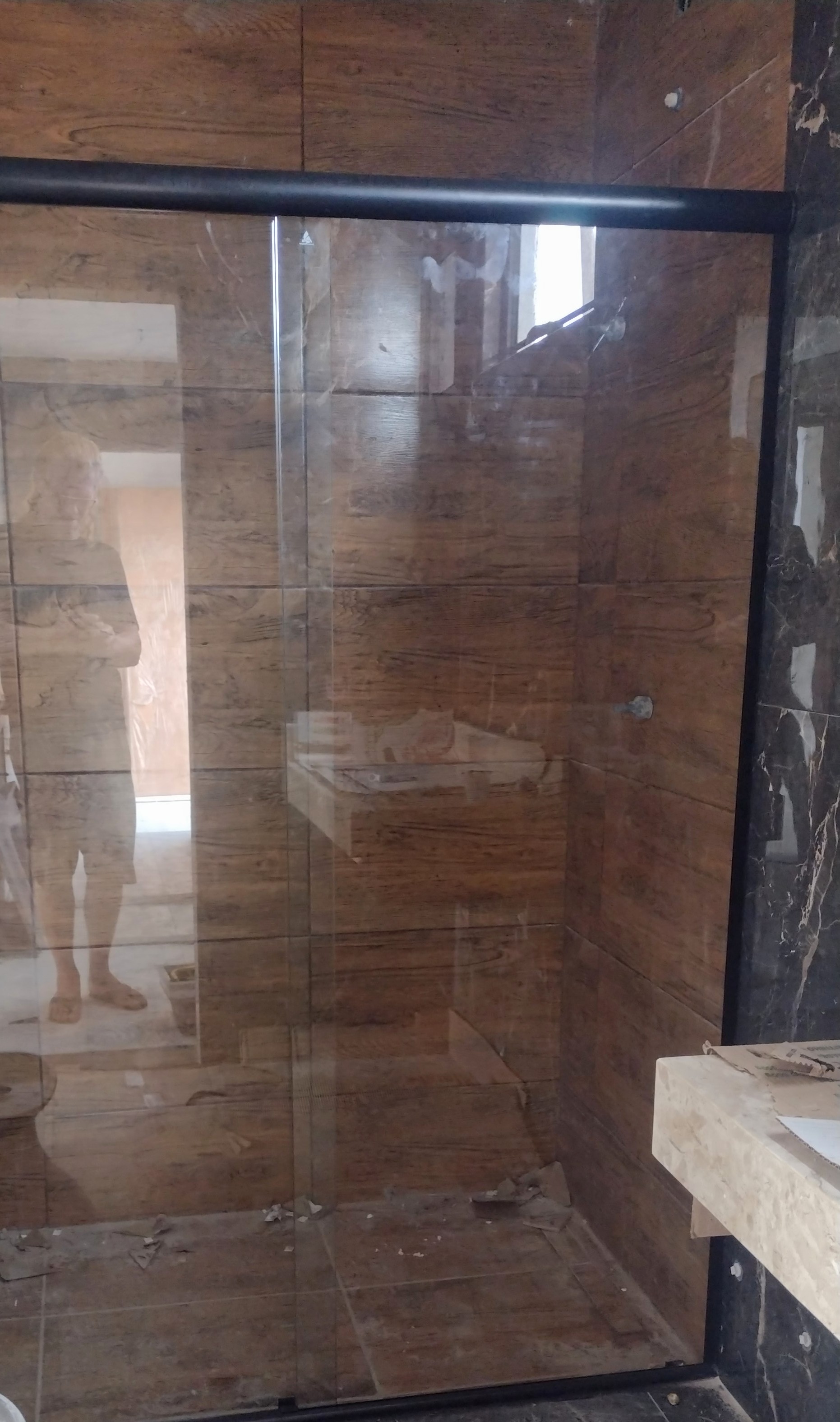 Ook zijn gisteren de glazen boxen in de badkamers gemonteerd.