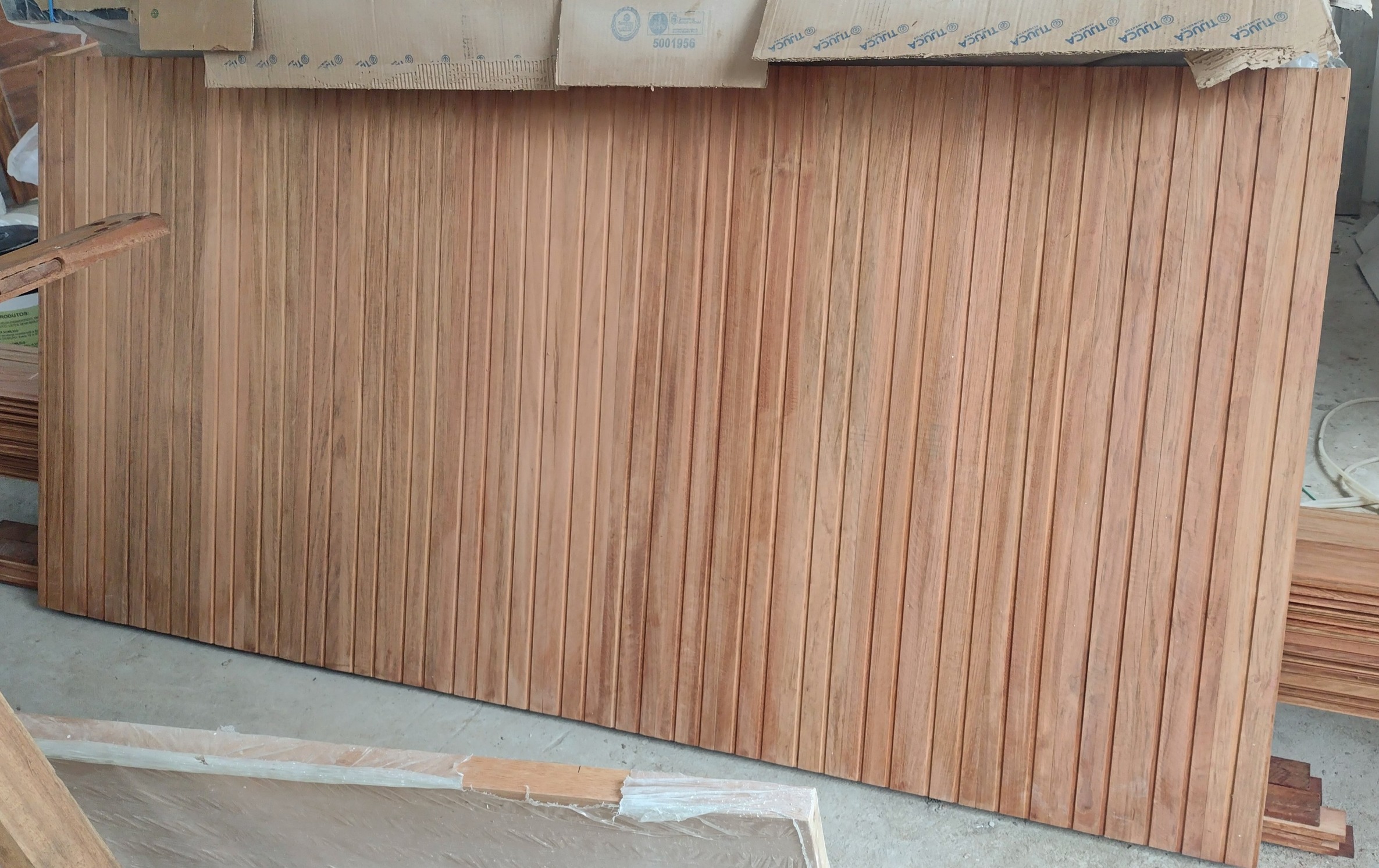 De deuren en deurposten worden geinstalleerd. Alles het edele houtsoort muiracatiara van de Astronium lecointei boom. Een keihard soort waar houtworm zijn tanden op breekt :lol: