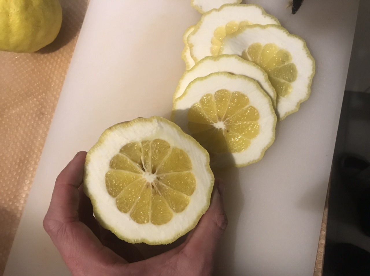 Het is al een tijdje geleden dat ik op dit forum actief geweest ben, maar misschien nog niet te laat voor leuke bevindingen via dit medium mee te delen… Sinds 2017 ben ik de trotse eigenaar van een Citrumelo “Swingle” (Citrus trifoliata X Citrus x paradisi) die ik indertijd bij Flora Toskana heb aangekocht. Na enkele jaren goed doorgegroeid te hebben en een paar korte koudeperioden doorstaan te hebben tijdens afgelopen winters, heb ik dit jaar eindelijk mijn eerste oogst binnen (15-tal vruchten). De soort doet het hier uitstekend, is een sterke groeier en is aangezien zijn beperkte grootte en leeftijd verrassend productief in mijn opinie. De foto’s spreken al dan niet voor zich, vond het alleszins een leuk idee om mijn bevindingen met jullie te delen. De vruchten smaken licht zuur en zoet in het begin, met een bittere nasmaak. Niet ideaal vind ik om rauw te eten, maar uitstekend om er marmelade mee te maken of als toevoeging bij spuitwater en gin-tonic. Kortom, zeker en vast een aanrader!