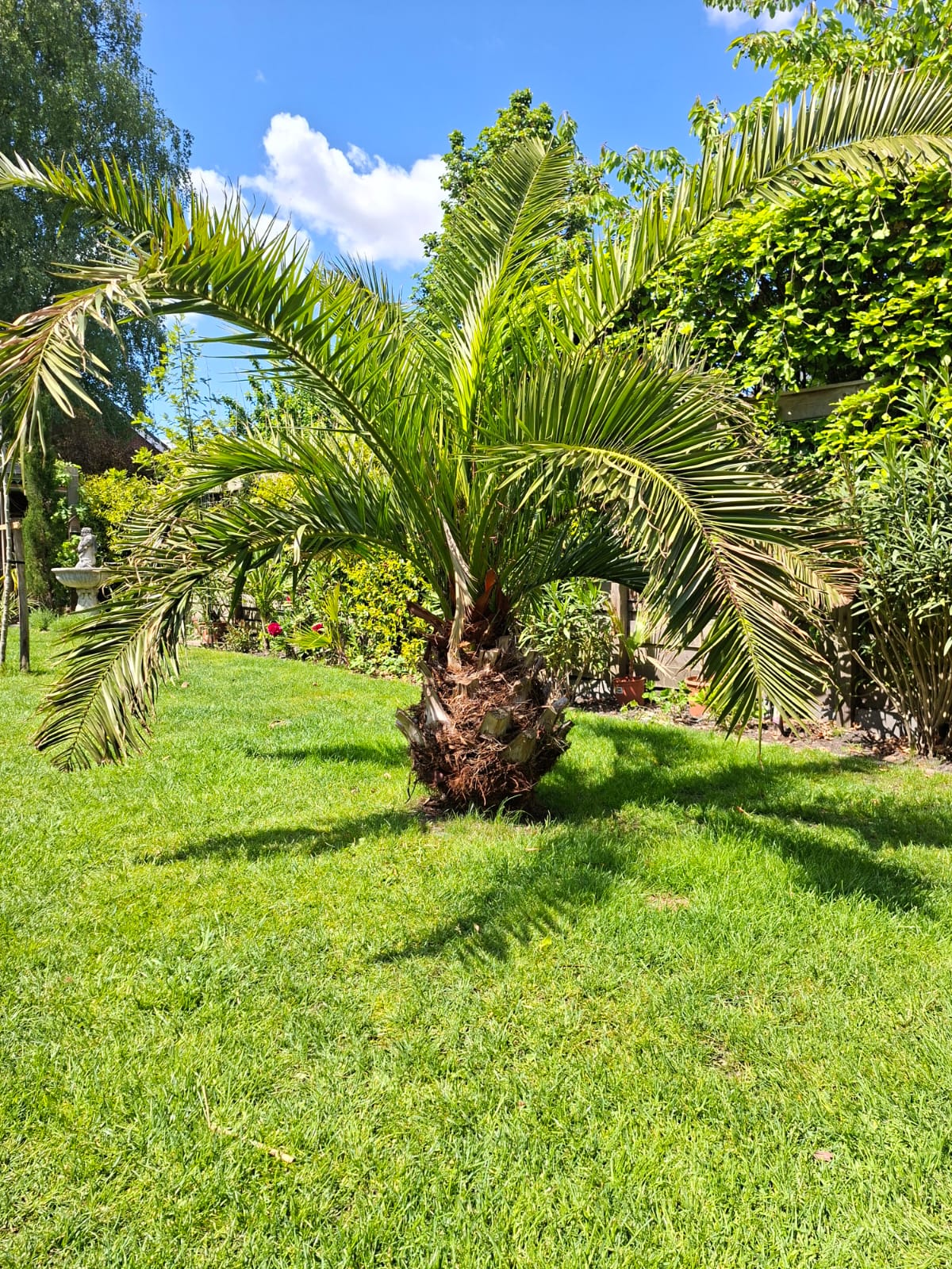 Maar goed, de hergroei was erg goed. In het centrum zitten weer zes nieuwe veren klaar en zijn vorig seizoen tot halverwege tot ontwikkeling gekomen. Nu zijn ze perfect door de winter gekomen en ik verwacht weer een mooie kroon komende maanden. Op de foto zie je dat ik ook redelijk wat van de onderste bladeren heb verwijderd. De plek waar deze staat is ook verre van ideaal. Zonder bladsnoei kun je er echt niet langs.