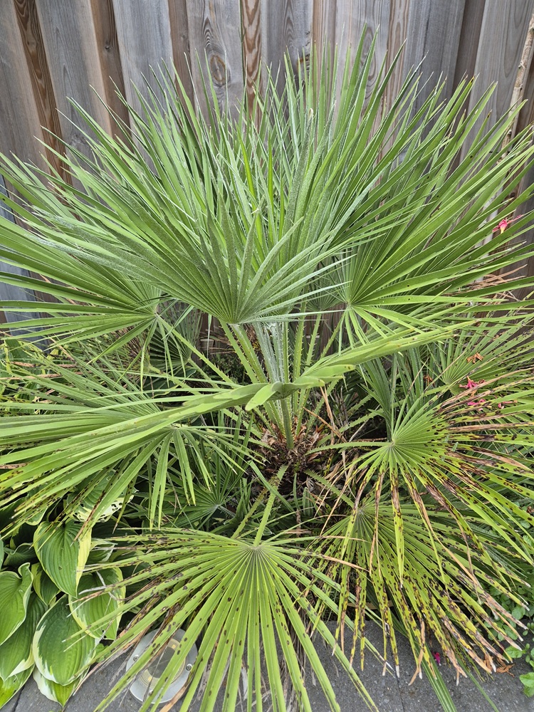 Ik heb vorig jaar een Chamaerops in de tuin geplant maar met voorbehoud. Deze mediterrane soort is gevoelig voor speerrot. Mijn gekoesterde volwassen Cerifera overwintert vooralsnog in de kas.
