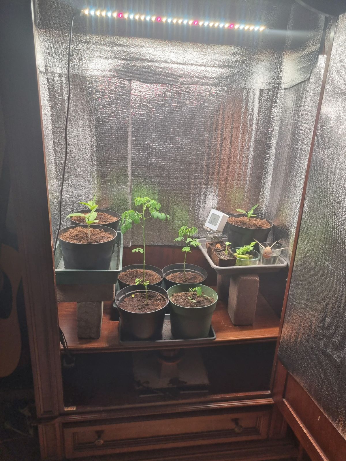 Dus ik hou het aantal lichturen gewoon op 14 uur, maar de lamp zal ik nog hoger van de plant moeten krijgen in deze Italiaanse Garderobe Kast :? 8-)