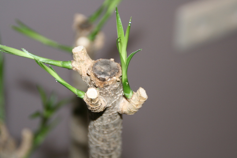 Van het laatste werden de bladeren geel en uiteindelijk heb ik het groen afgeknipt. Gelukkig komen er prachtige nieuwe scheuten uit. Alleen, ze zitten meteen weer onder de honingdauw.