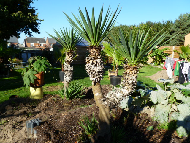 Deze yucca's(foto's boven) ben ik gaan weghalen bij mensen in de voortuin mits een kleine vergoeding en omdat deze uitgegraven zijn met enorme kluit heb ik ze voorlopig terug in vollegrond gezet om int voorjaar terug te verplanten