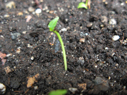 hallo, had beloofd jullie op de hoogte te houden en na bijna een maand is dit het resultaat. Van de 10 zaadjes zijn er nu al 6 gekiemd ( reeds 2 na 16 dagen ). Ziet er dus, zoals gedacht, geen palm uit want maakt al twee kleine kiemblaadjes aan. Wat het is , weten we waarschijnlijk nog niet (nog veel te klein), maar ik laat jullie iets weten zodra er wezenlijke verandering te merken is.