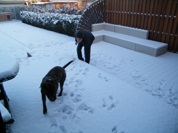 hond en tuin zijn ondertussen al flink veranderd. alleen het weer is net hetzelfde :)
