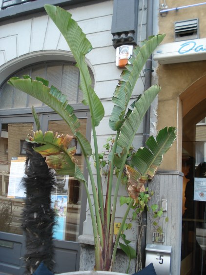 2 Trachy's (maar dat zie je wel vaker), een behoorlijk grote canariensis in pot (zo'n 3m) en een Ravenala!